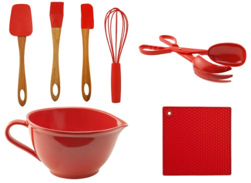 C-Red Batter Bowl w/Salad Tong, Trivet, and Utensil Set Review