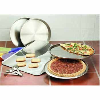 Functional and handsome, the 17 pieces in this economical Farberware set provide all the basic necessities for home cooking and baking. Each pot or pan is constructed of gleaming 18/10 stainless steel that encapsulates a thick aluminum core in the base, the "full cap" advantage that allows Farberware Classic to cook evenly without hotspots. Stainless-steel lids and black phenolic handles in traditional styling withstand oven heat up to 350 degrees F. While not as heavy-gauge as the Farberware Millennium line, Classic has long been a popular company standard.